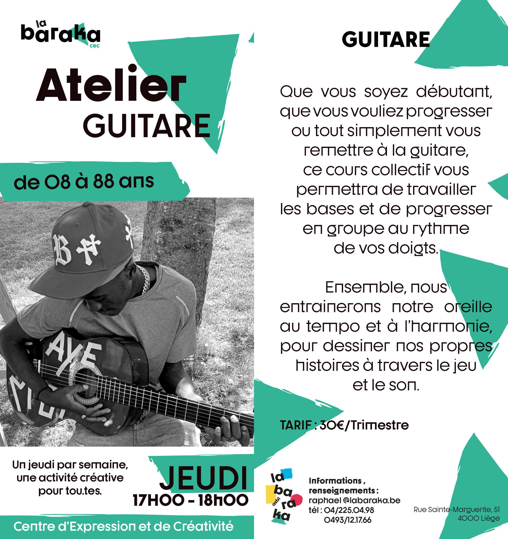 Informations pratiques : https://www.labaraka.be/cec-guitare/