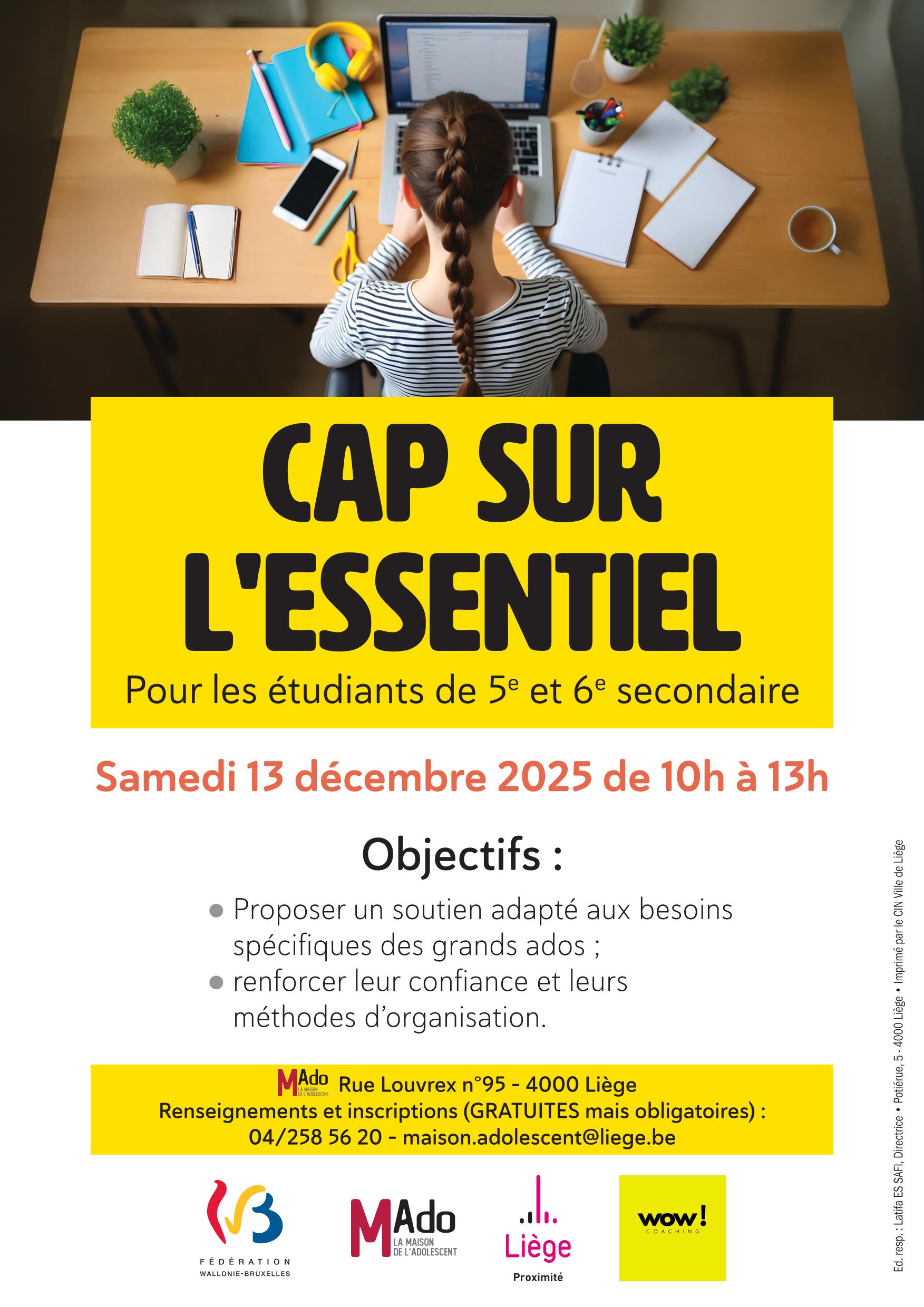 On a ce qu’il te faut : un atelier gratuit de coaching scolaire pour t’aider à garder l’essentiel en tête.