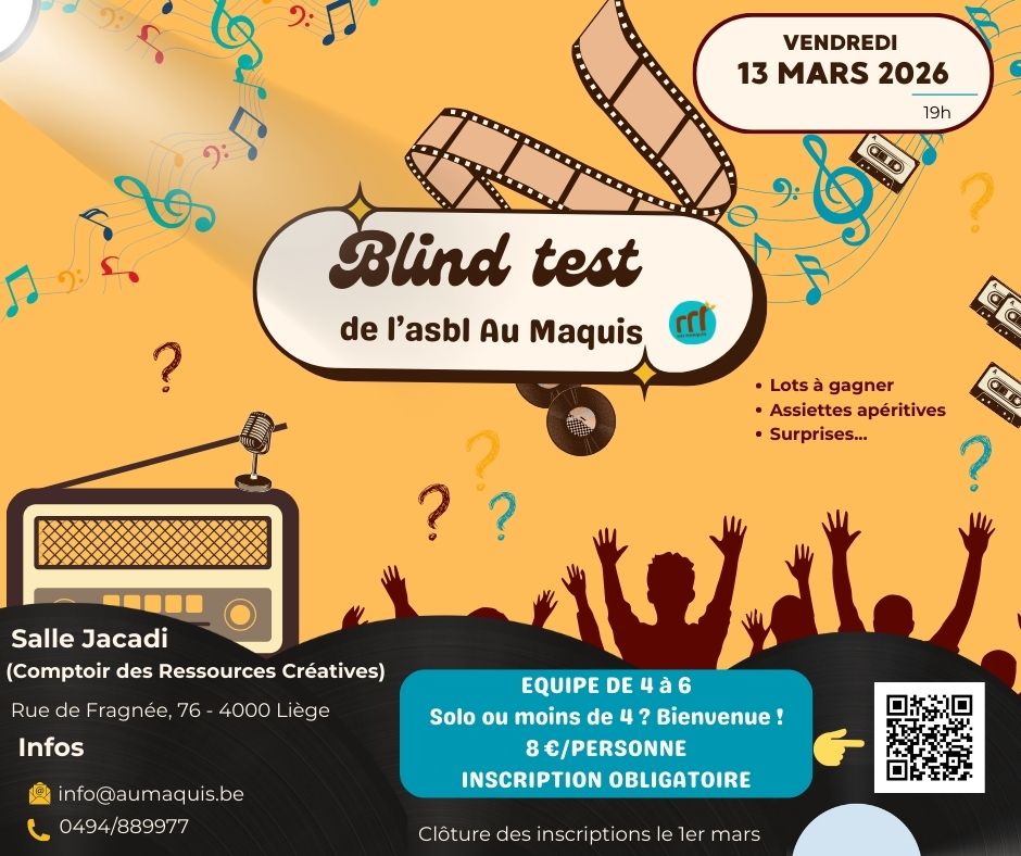 - 📍 Où ? Salle Jacadi (Comptoir des Ressources Créatives) rue de Fragnée, 76 – 4000 Liège
