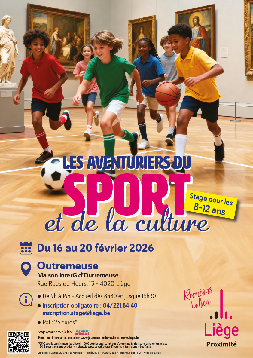 - Les aventuriers du sport et de la culture – de 8 à 12 ans – Outremeuse – 25 €