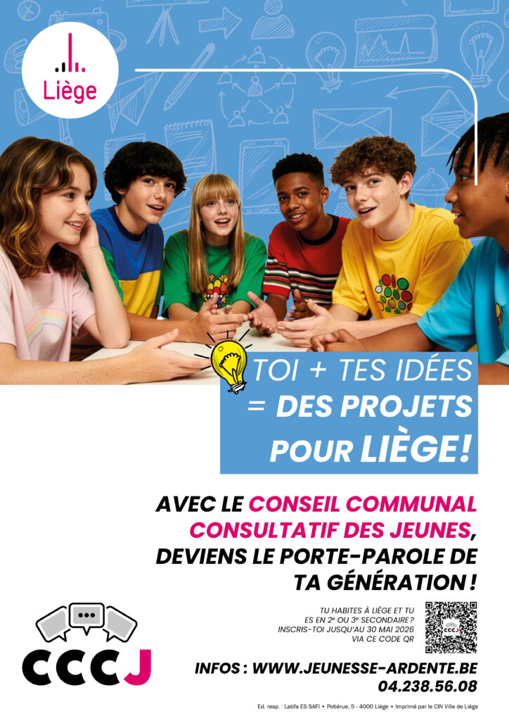 - L’objectif : Porter la voix des ados liégeois, débattre et transformer tes idées en actions réelles.