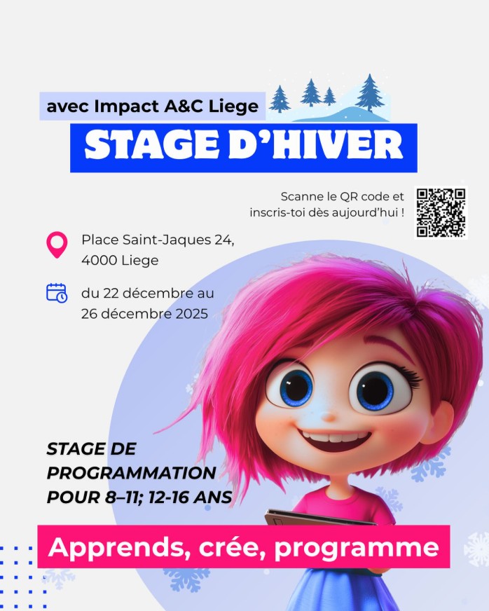 Chez Impact A&C Liège, nous combinons technologie, imagination et plaisir pour offrir un stage de codage qui motive les jeunes à apprendre, explorer et créer.
