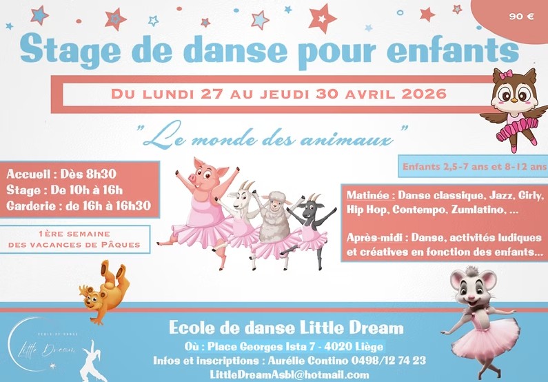 Le stage est divisé en deux groupes d'âge, en matinée nous mettons en place les cours de danse : les enfants de 2,5 à 6 ans et ceux de 7 à 12 ans. Chaque groupe bénéficie d'un programme adapté à son niveau et à ses besoins spécifiques, assurant ainsi une expérience enrichissante pour tous. L'après-midi, nous mettons en place les activités ludiques et créatives en fonction du thème de la semaine, ils auront d'ailleurs la possibilité de repartir avec leurs créations uniques.
