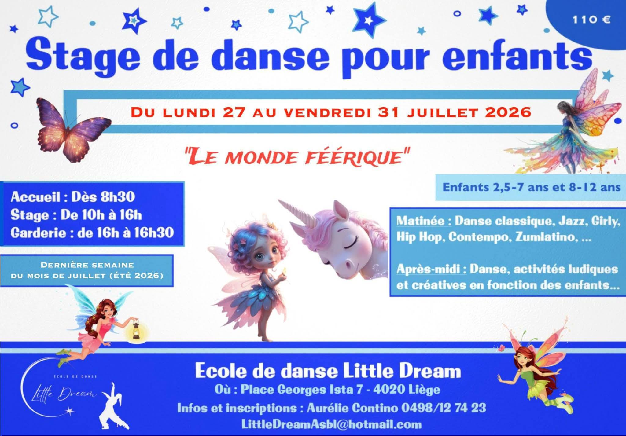 Le stage est divisé en deux groupes d'âge, en matinée nous mettons en place les cours de danse : les enfants de 2,5 à 6 ans et ceux de 7 à 12 ans. Chaque groupe bénéficie d'un programme adapté à son niveau et à ses besoins spécifiques, assurant ainsi une expérience enrichissante pour tous. L'après-midi, nous mettons en place les activités ludiques et créatives en fonction du thème de la semaine, ils auront d'ailleurs la possibilité de repartir avec leurs créations uniques.