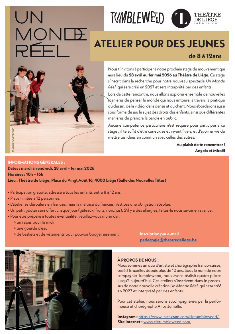 Ce stage s’inscrit dans la recherche pour notre nouveau spectacle Un Monde Réel, qui sera créé en 2027 et sera interprété par des enfants.